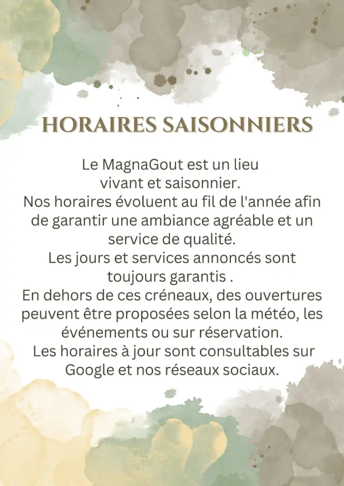 Au cœur du charmant village de Berlou, Le MagnaGout est un lieu convivial où se mêlent plaisirs de la table et sensations en pleine nature. Fondé par Aurélie et Ludo, ce lieu unique réunit un restaurant-bar chaleureux et une activité de trottinettes électriques tout terrain (GM Évasion) pour découvrir les trésors du Haut-Languedoc autrement.